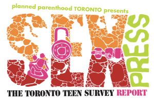 A multicoloured graphic sign with the words, Planned Parenthood Toronto Presents SexPress The Toronto Teen Survey Report.